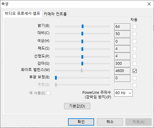 어느 날부터 웹캠이 흑백으로 나온다면 아래의 방법을 시도해보자.